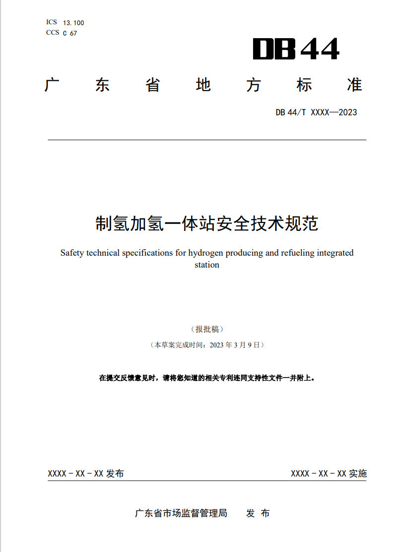 5月6日,廣東省應(yīng)急管理廳發(fā)布了關(guān)于征求《制氫加氫一體站安全技術(shù)規(guī)范(報批稿)》地方標準意見的公告。